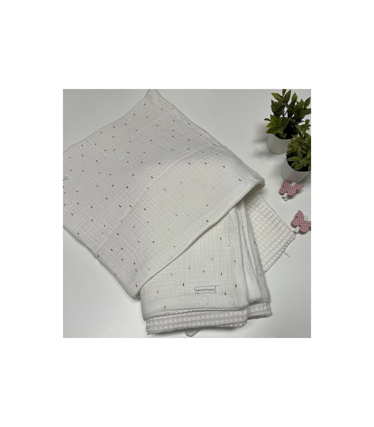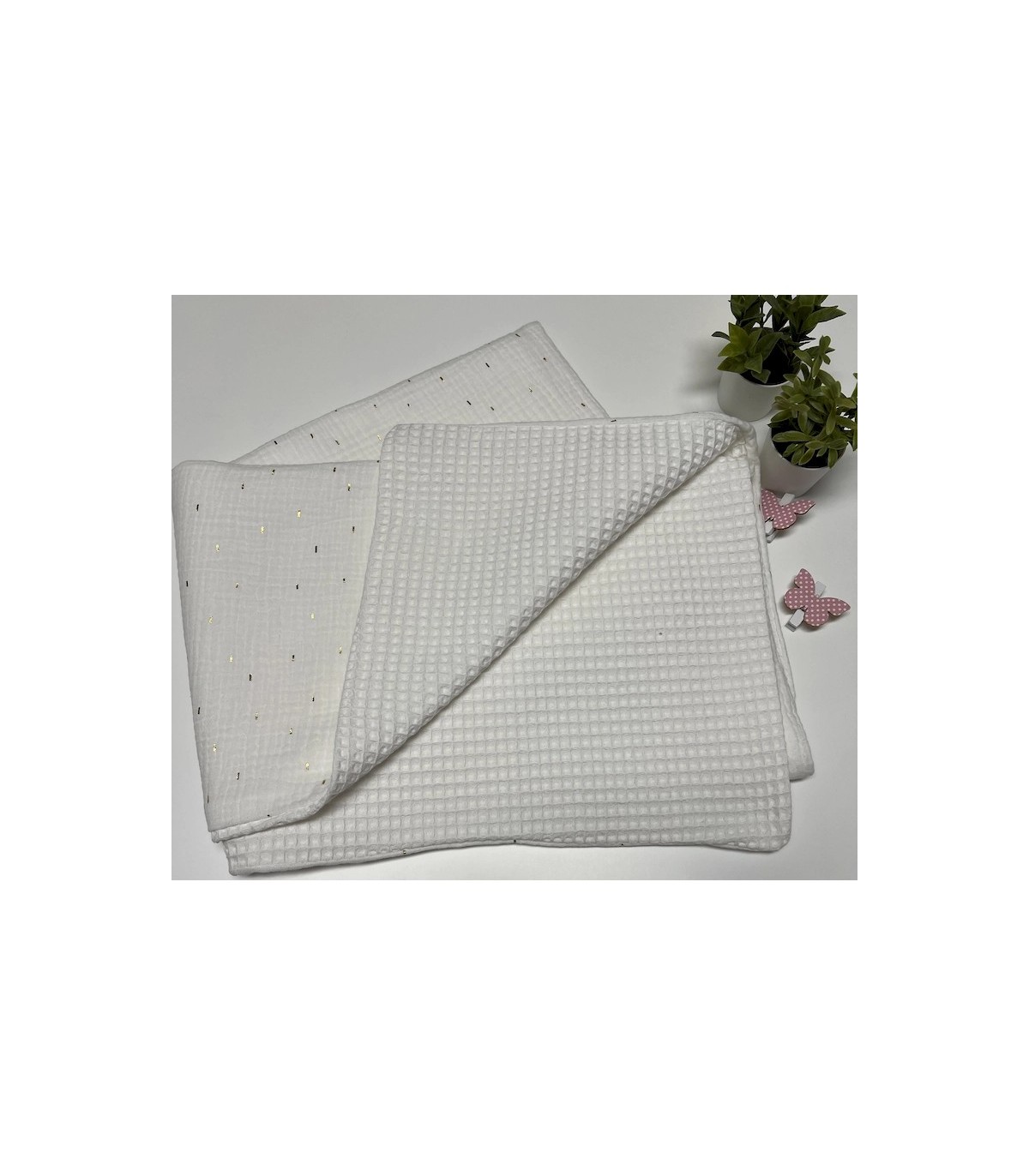 - Un lado de muselina ligera combinada con waffle de algodón 100%.