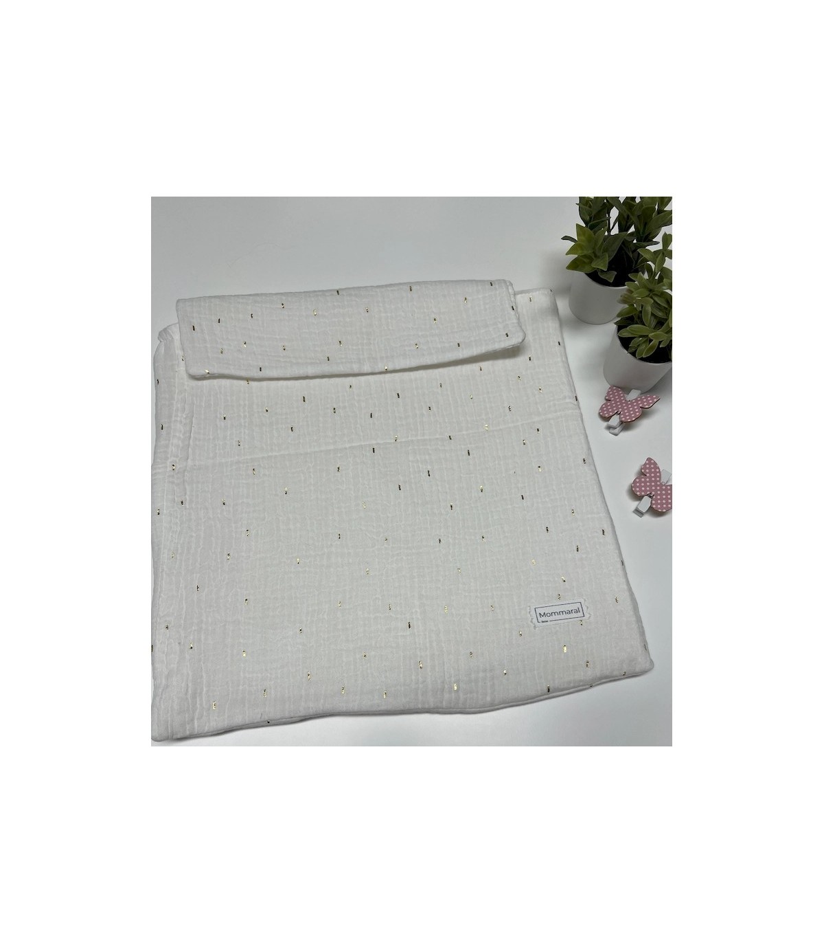 La mantita de entretiempo reversible para bebé de Mommaral Bebe está es el accesorio perfecto para los días más suaves de otoño. Hecha a mano con tejidos naturales y transpirables, combina estilo y funcionalidad para acompañar al bebé en casa o en el carrito.