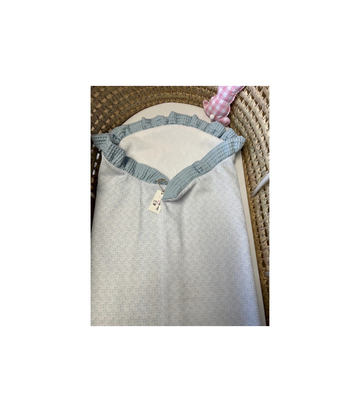 El arrullo está rematado con un bonito volante de tejido Waffle en color azul, que lo convierte en una pieza única y especial, perfecta tanto para el día a día como para regalar.
