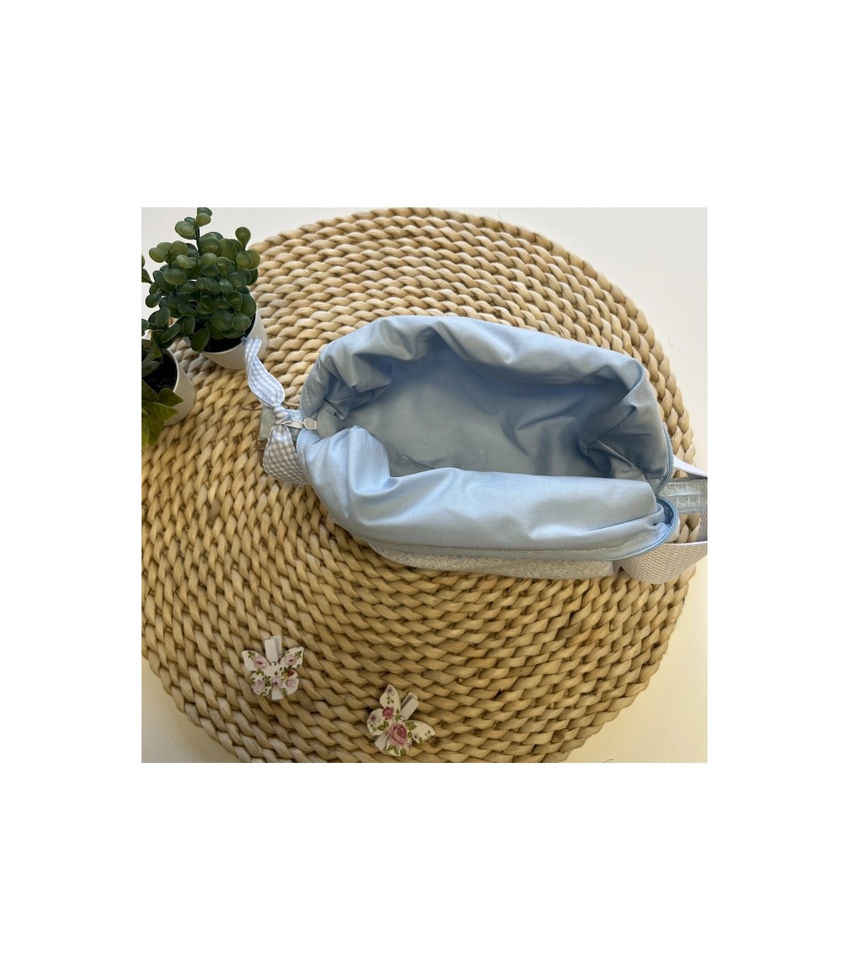 Este neceser de algodón 100% hecho a mano en el taller de Mommaral Bebe es el complemento perfecto para tener a mano los imprescindibles de tu bebé: cremas, chupetes, pañales…