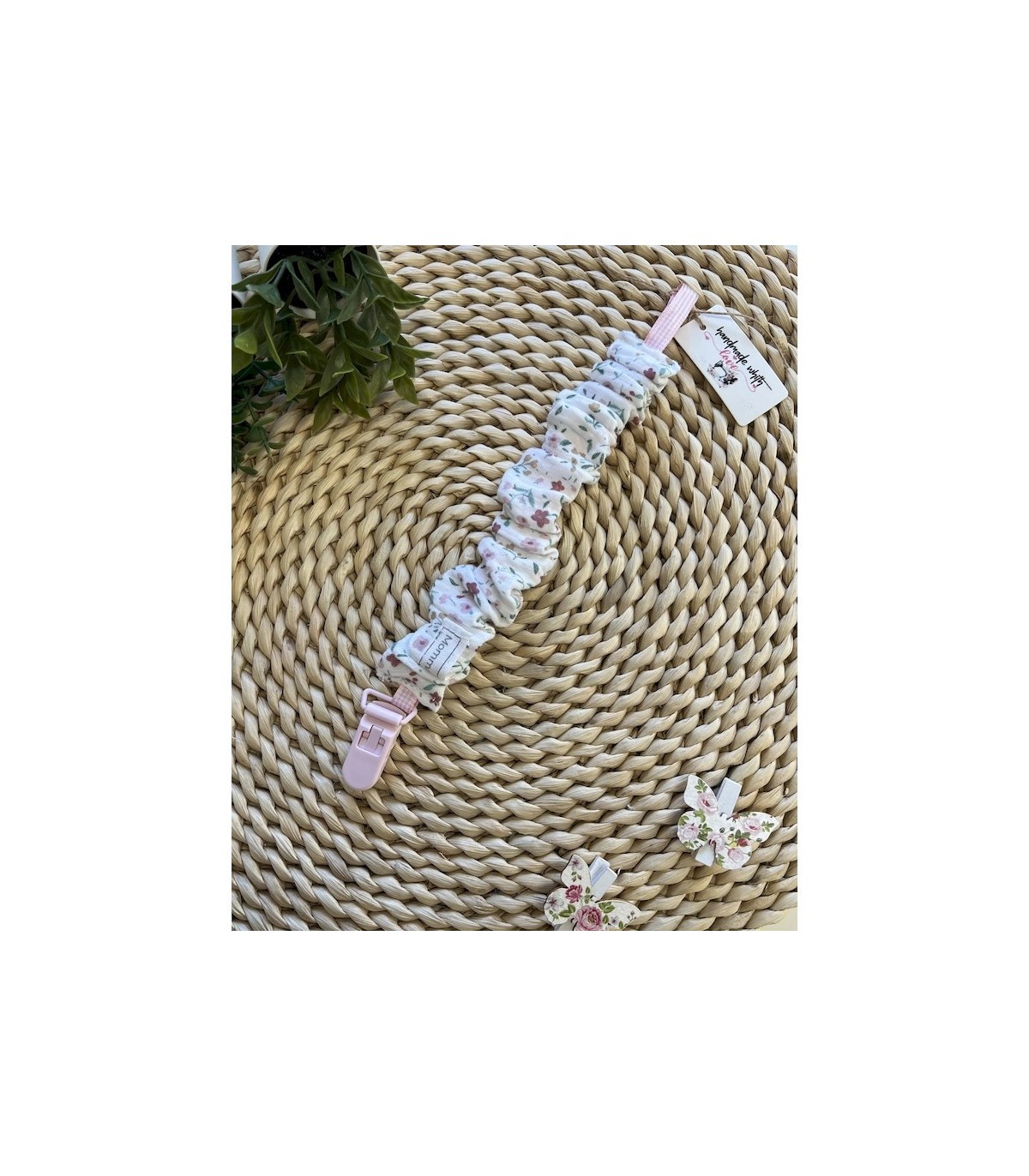 Chupeteros hechos a mano por Mommaral Bebe, confeccionados con tela Vichy y muselina 100% algodón. Incluye con una cinta de vichy rosa para sujetae el chupete y clip de plástico en color rosa, asegurando comodidad y sujeción segura.