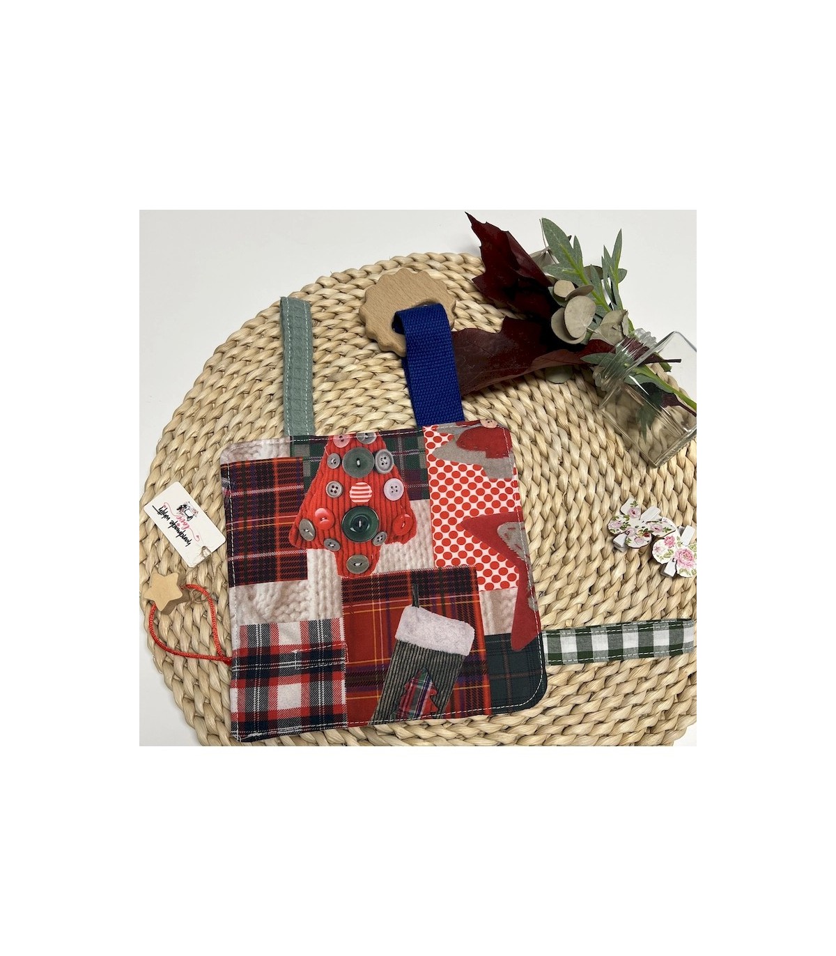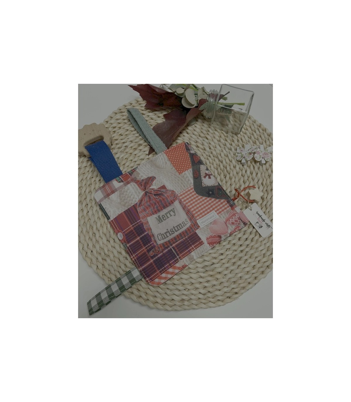 Confeccionado con una preciosa tela navideña, es un regalo ideal para fiestas o un detalle especial para tu bebé. Cada pieza se elabora con mimo, cuidando la seguridad y el confort de los más pequeños.