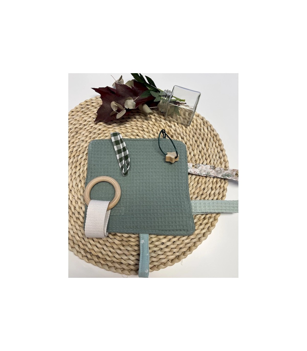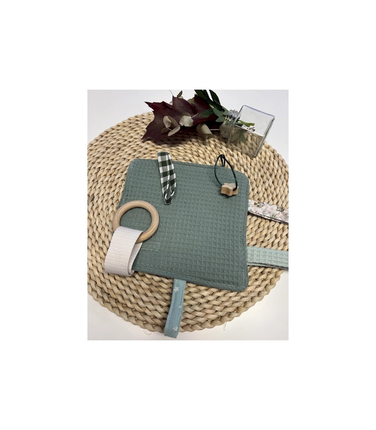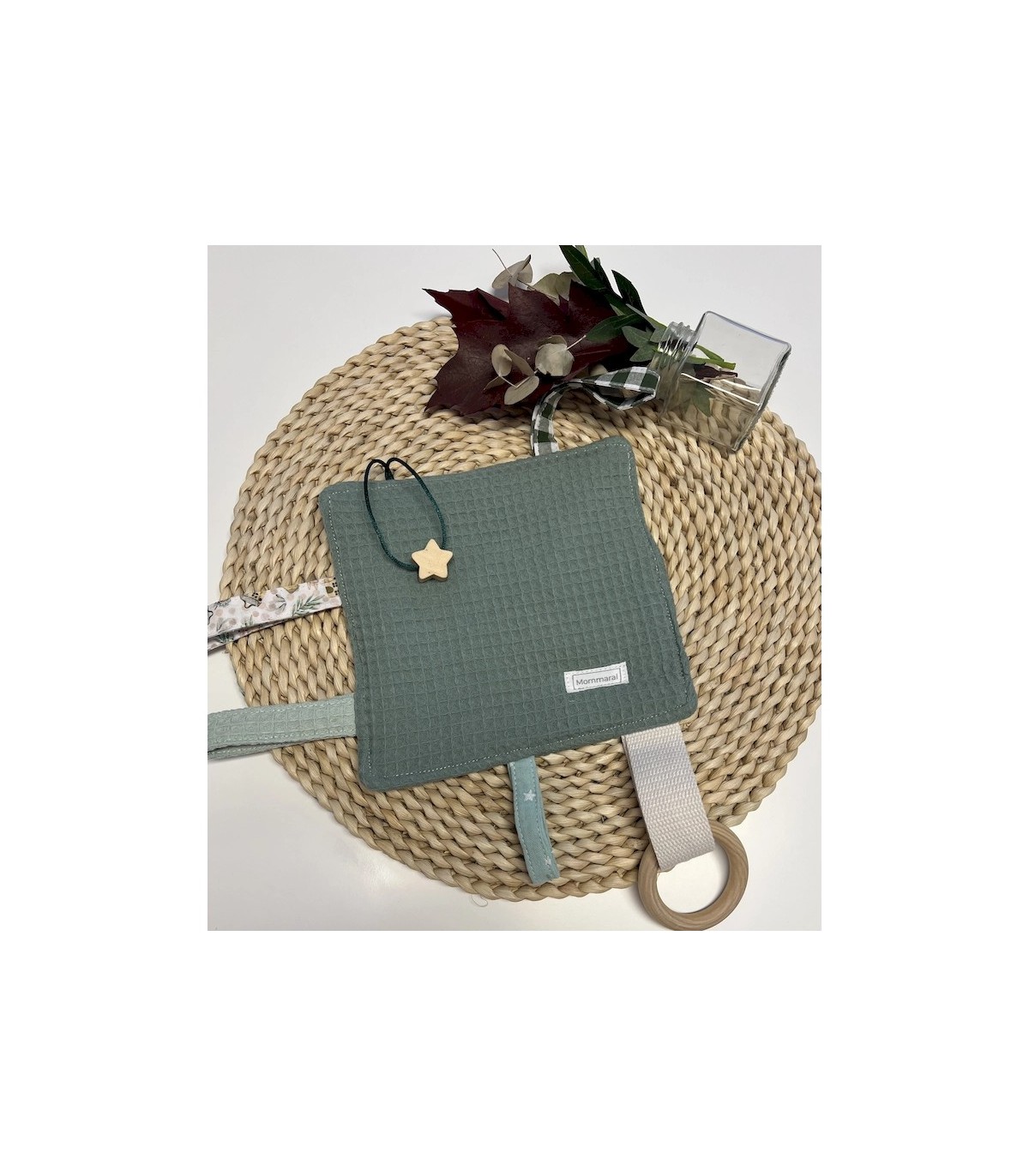 Confeccionado con una preciosa tela waffle en verde navideño, es un regalo ideal para fiestas o un detalle especial para tu bebé. Cada pieza se elabora con mimo, cuidando la seguridad y el confort de los más pequeños.