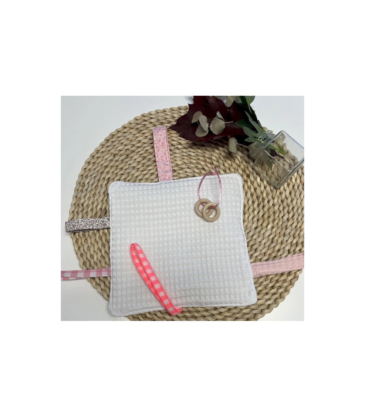 Confeccionado con una preciosa tela waffle en blanco, es un regalo ideal para fiestas o un detalle especial para tu bebé. Cada pieza se elabora con mimo, cuidando la seguridad y el confort de los más pequeños.