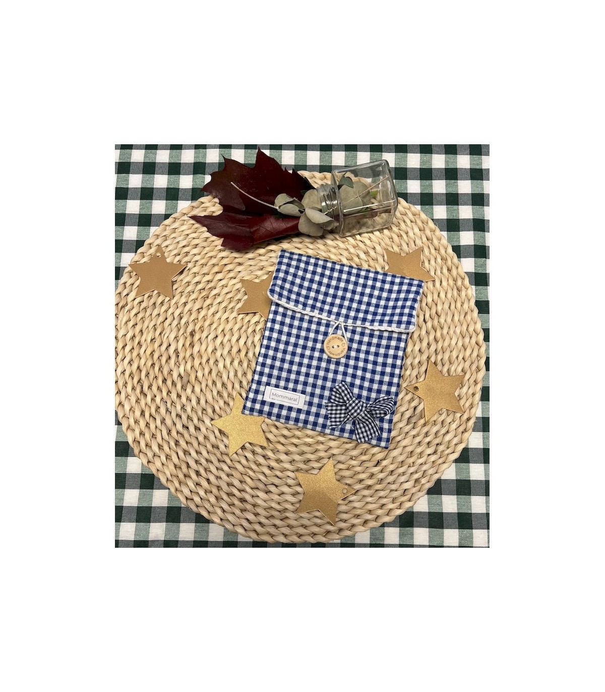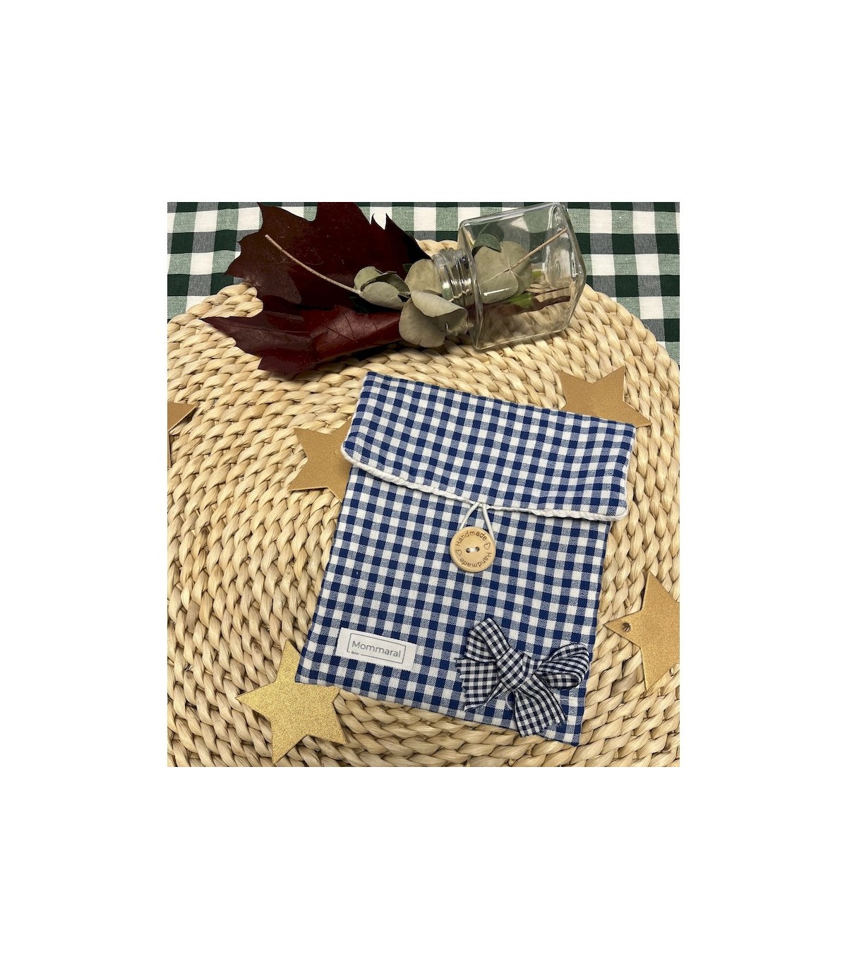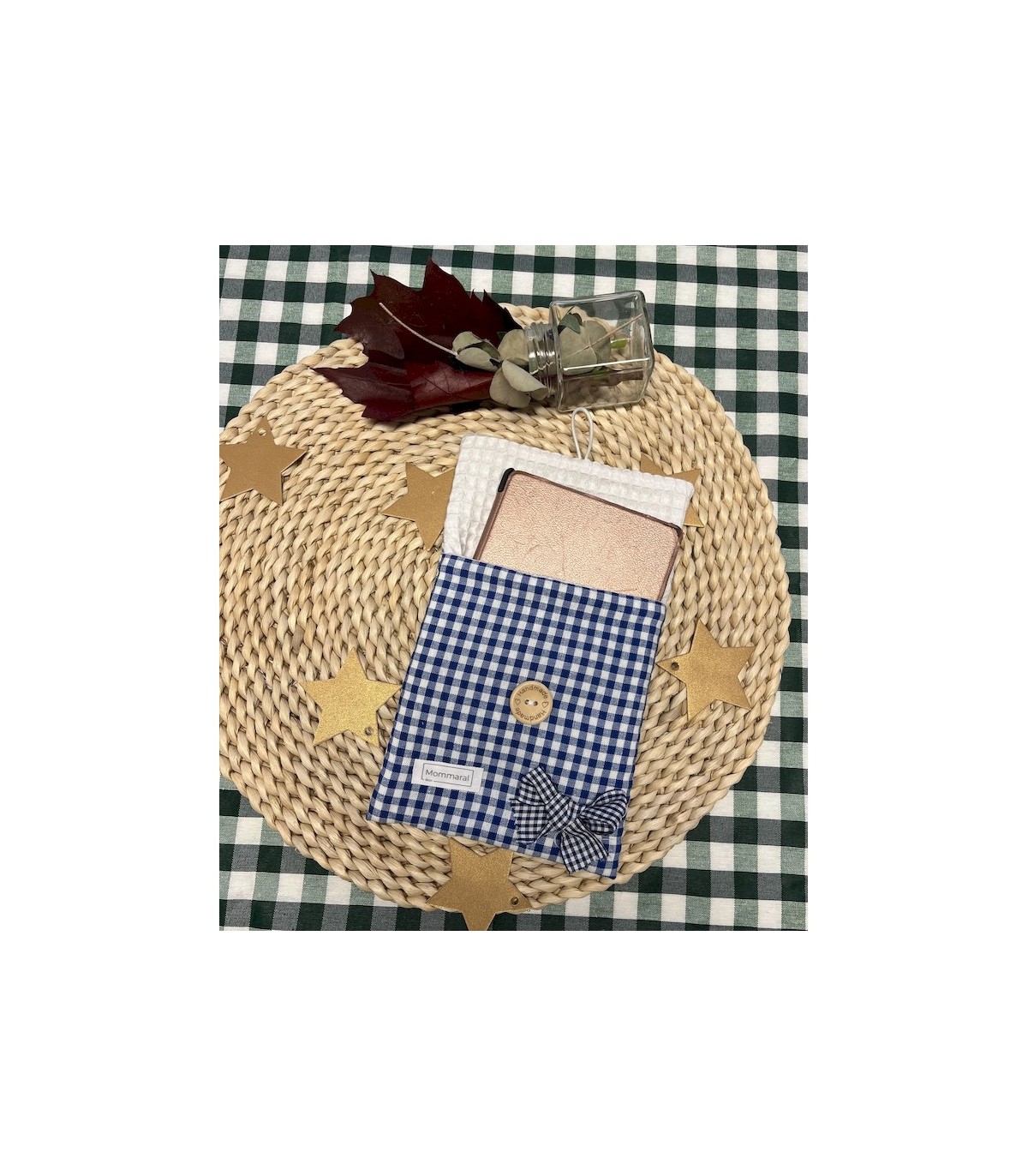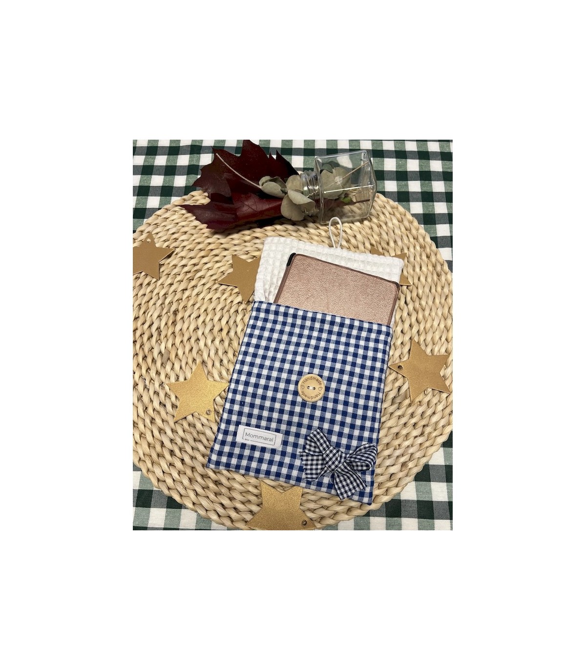 Protege tu e-Book con estilo con esta preciosa funda hecha a mano por Mommaral Bebe, confeccionada con tela vichy azul índigo en el exterior y waffle blanco en el interior, combina suavidad, elegancia y un toque clásico que nunca pasa de moda.